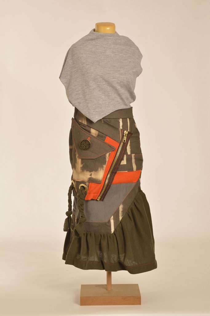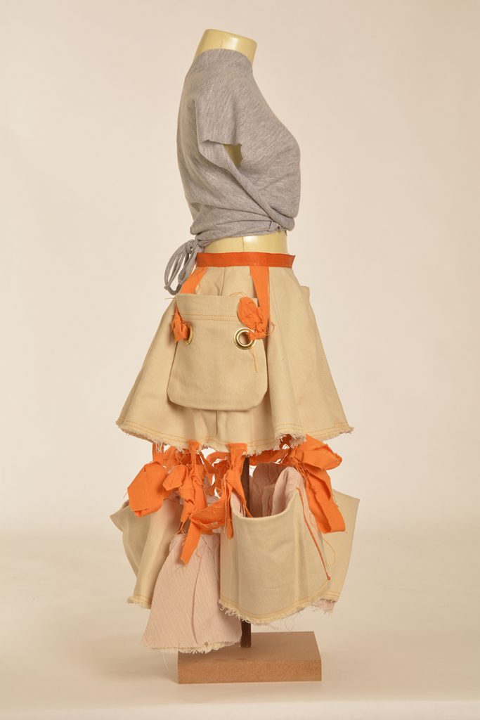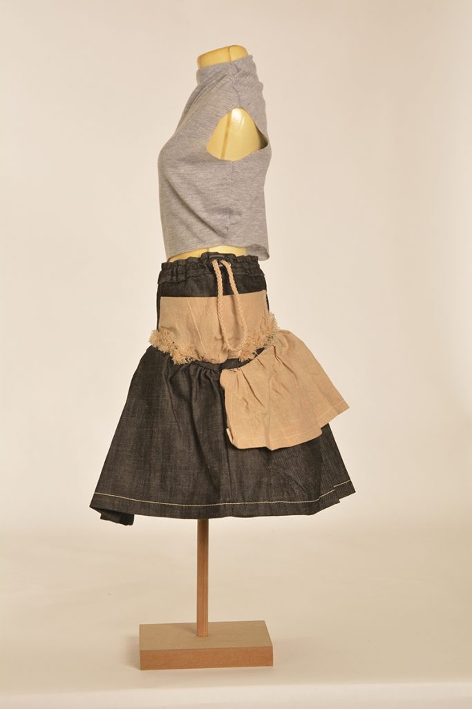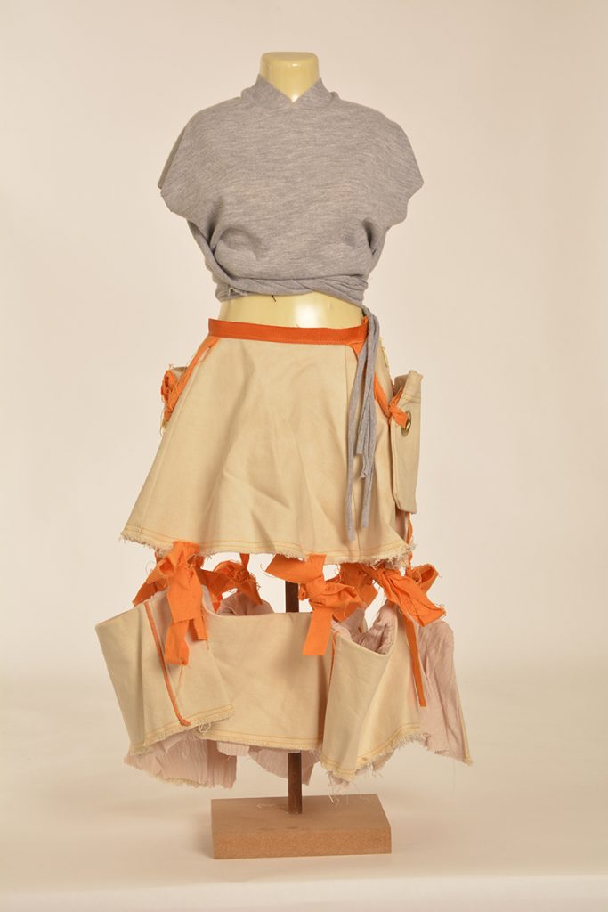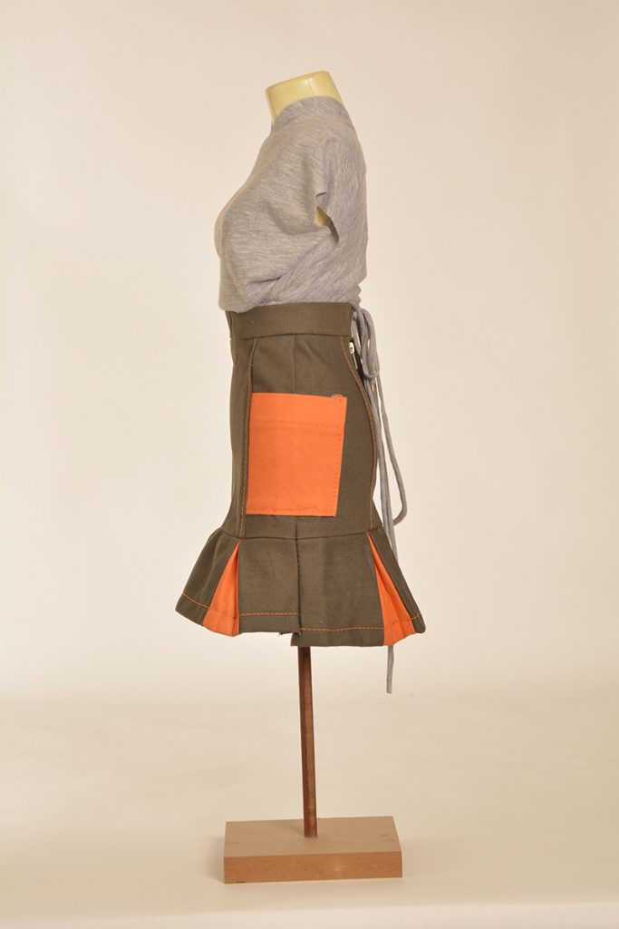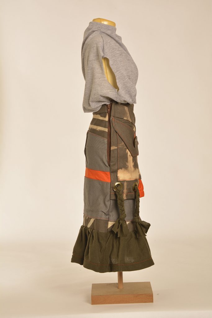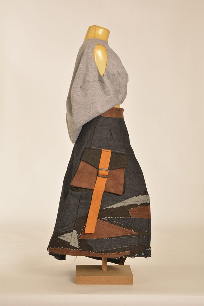 Learners were tasked to create designs that are directed and developed through a creative synthesis of contextual adherence. They were provided with two contexts: the first is the utility wear trend, which has a particular style embodied by the protective performance or multipurpose product trends but is also focused on functional problem solving. So, it looks a certain way, but it also functions in a certain way. The function involved here will relate to the conditions and problems of the COVID-19 lockdown. The other context is a subcultural style (there are three options to choose from here). The subcultural style is your vibe: while you must adhere to the context of punk/hip hop/grunge, this is an opportunity for you to express your creativity.