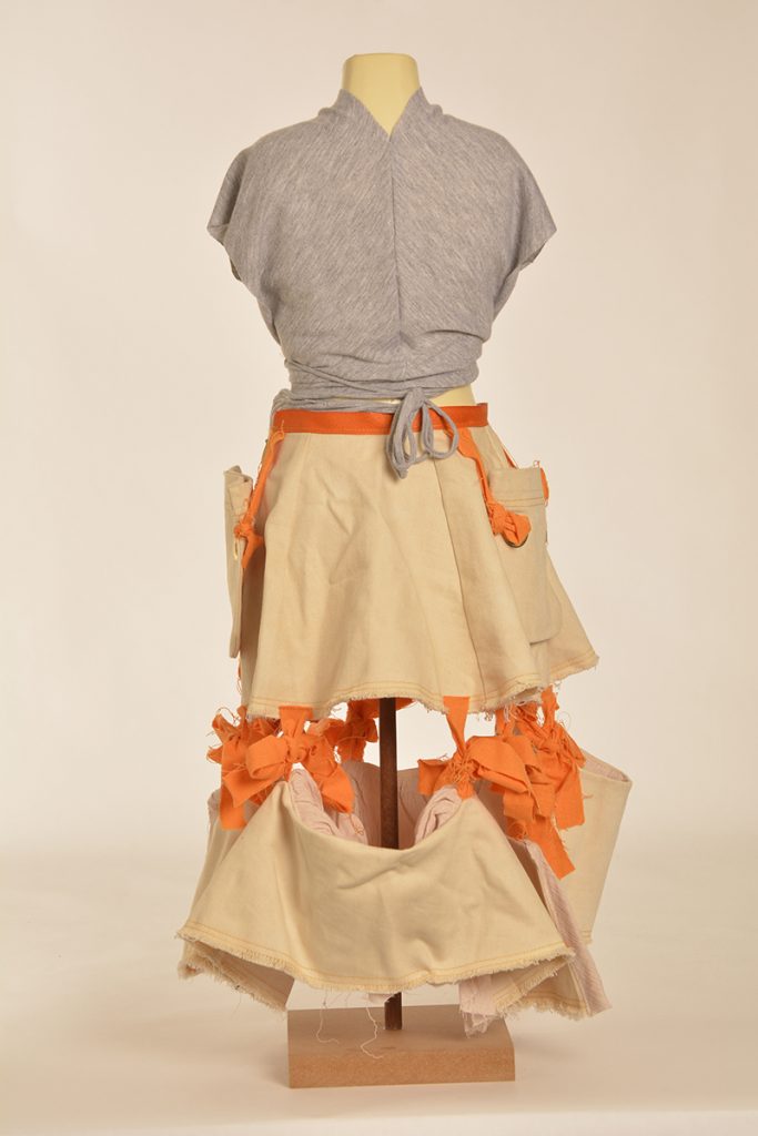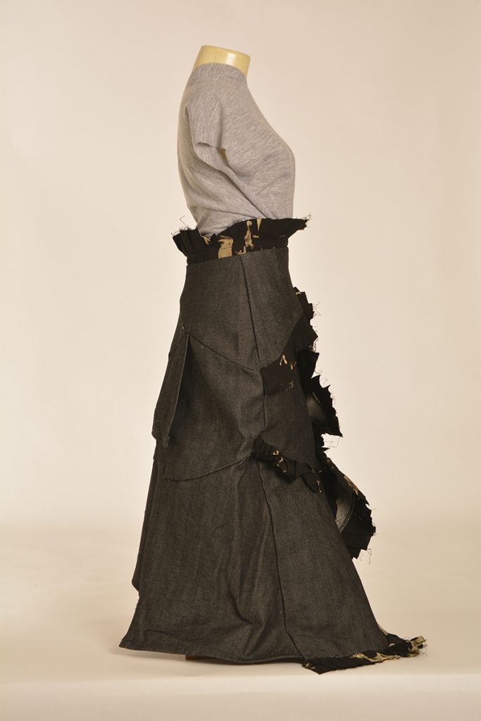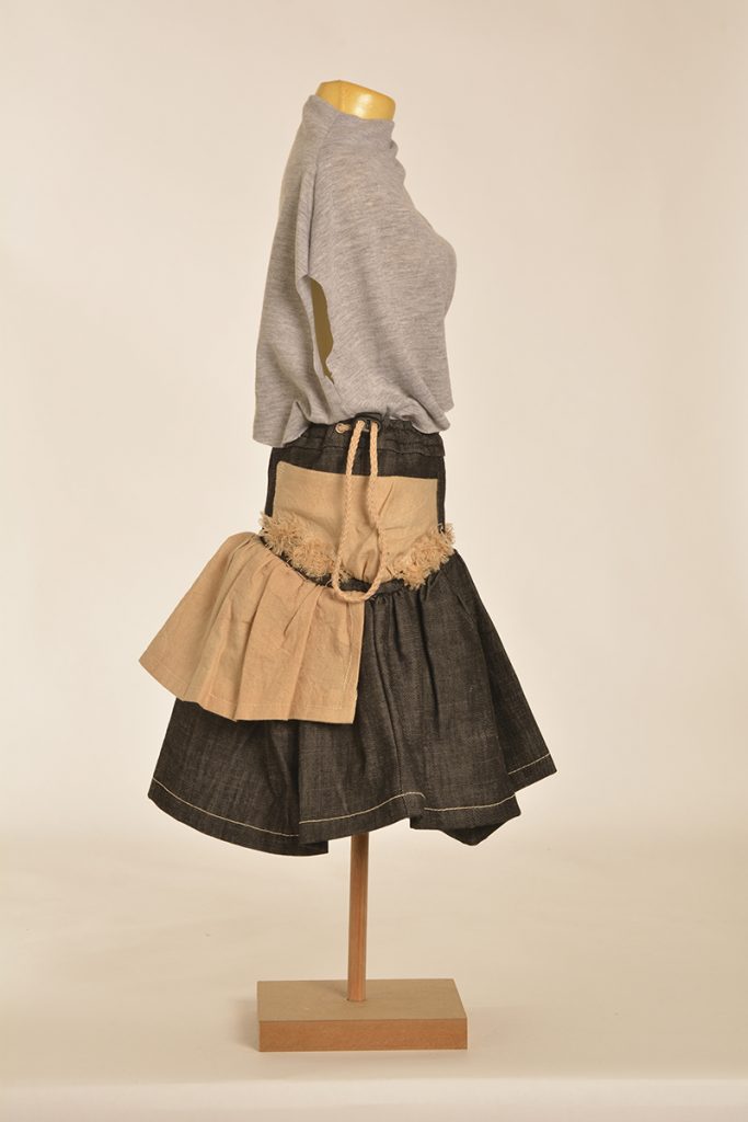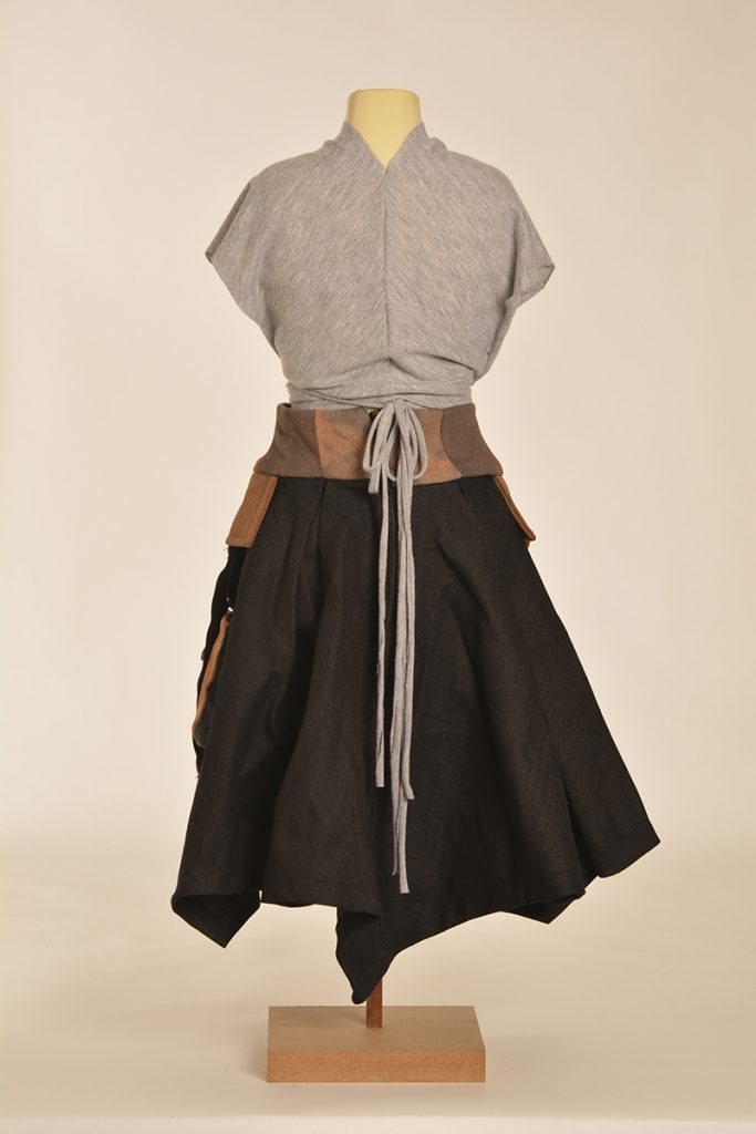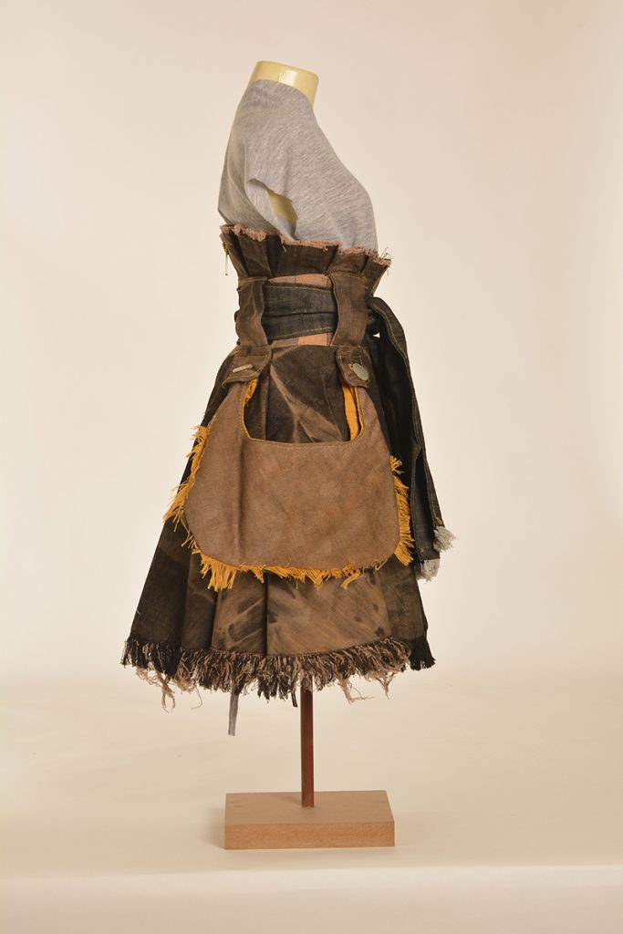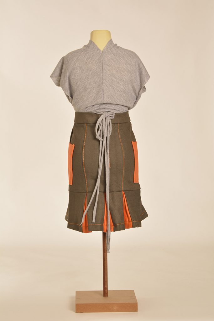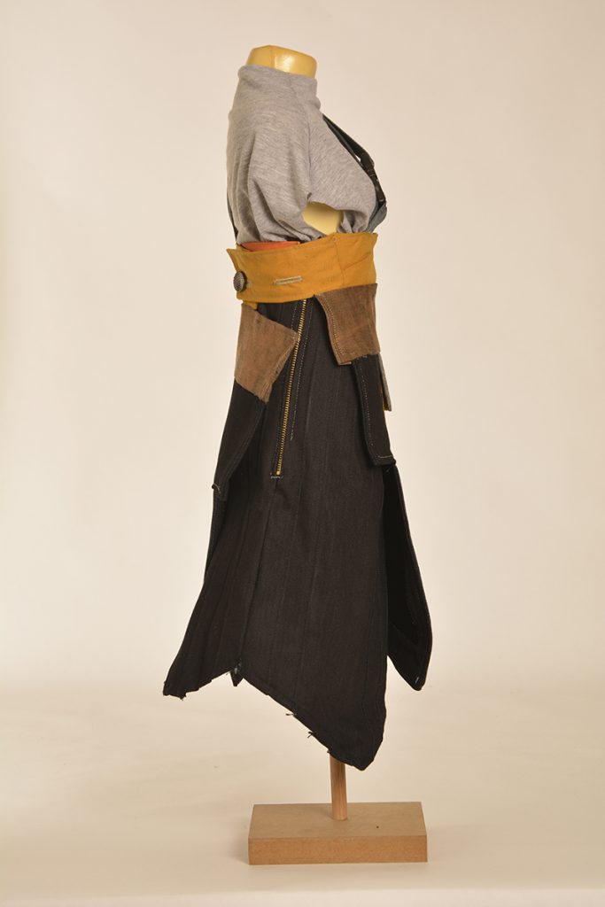 Learners were tasked to create designs that are directed and developed through a creative synthesis of contextual adherence. They were provided with two contexts: the first is the utility wear trend, which has a particular style embodied by the protective performance or multipurpose product trends but is also focused on functional problem solving. So, it looks a certain way, but it also functions in a certain way. The function involved here will relate to the conditions and problems of the COVID-19 lockdown. The other context is a subcultural style (there are three options to choose from here). The subcultural style is your vibe: while you must adhere to the context of punk/hip hop/grunge, this is an opportunity for you to express your creativity.