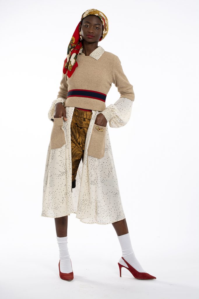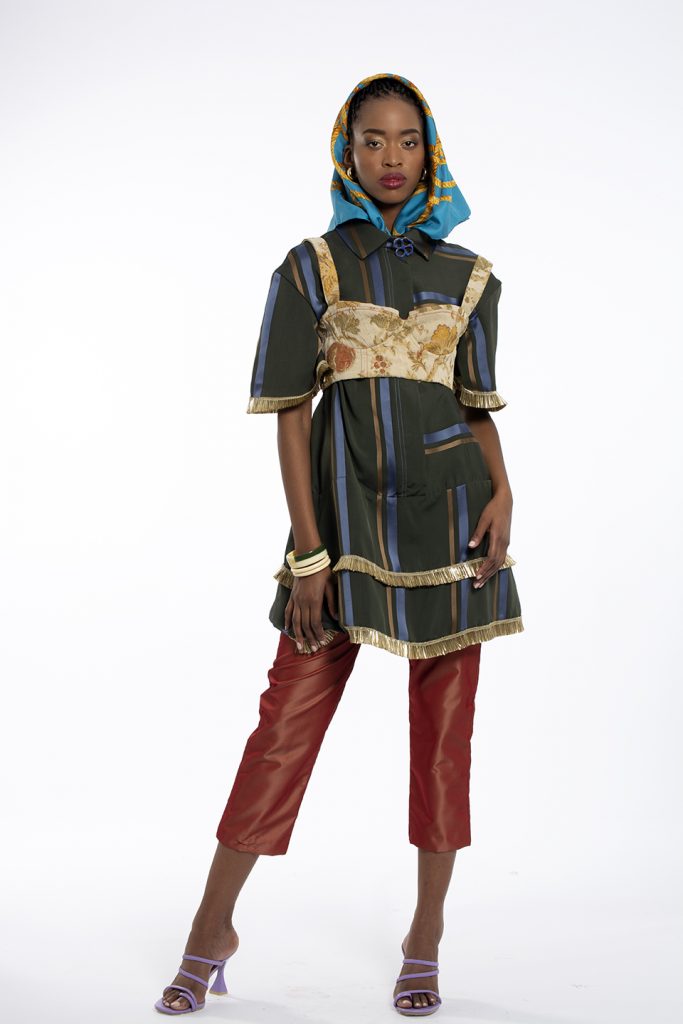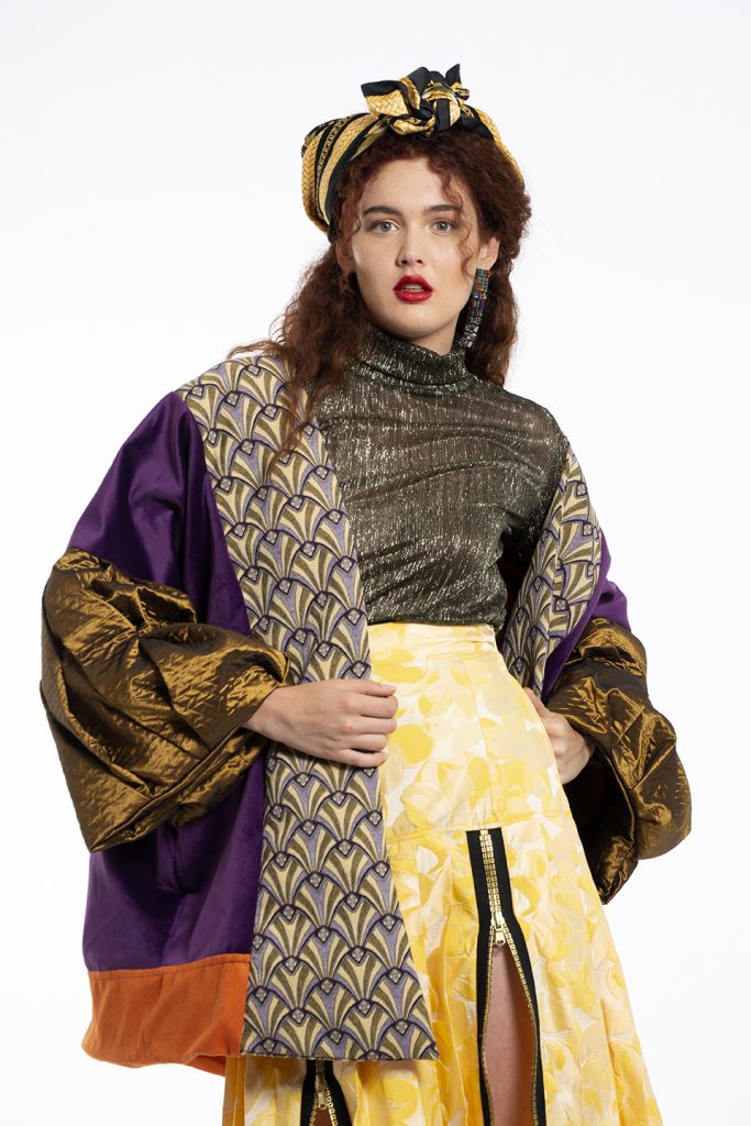 My collection is inspired by the “Woman’s Style Trend Concept S/S 21: GameScape” (Ross, 2019). This trend explores the possibilities of new realities, explains Ross (2019). “GameScape” (Ross, 2019) trend connects different timelines, different worlds, bold colours, unexpected trims and finishes. I focused in particular on the “History Mash-Up” (Ross, 2019) where “Contrast is the key” (Ross, 2019). I focus on the use of contrast in the colour palette and the use of mixed printed fabrics and textures. The colours of my collections are mainly secondary colours: purple, green and orange that create a loud and strong visual impact. This collection does not end in the way the looks are put together, they can be mixed and matched to creates further possibilities.