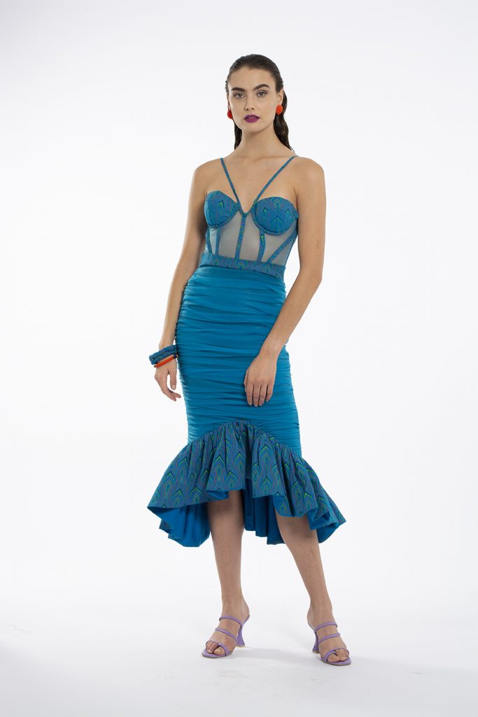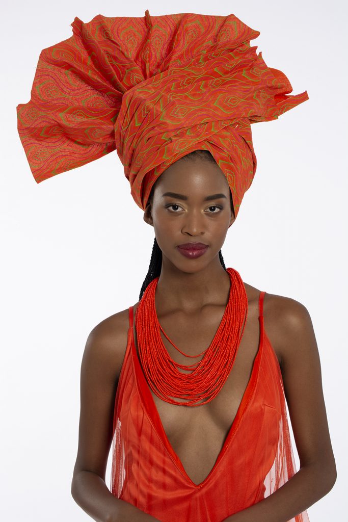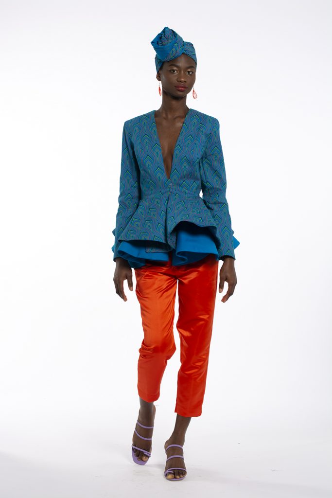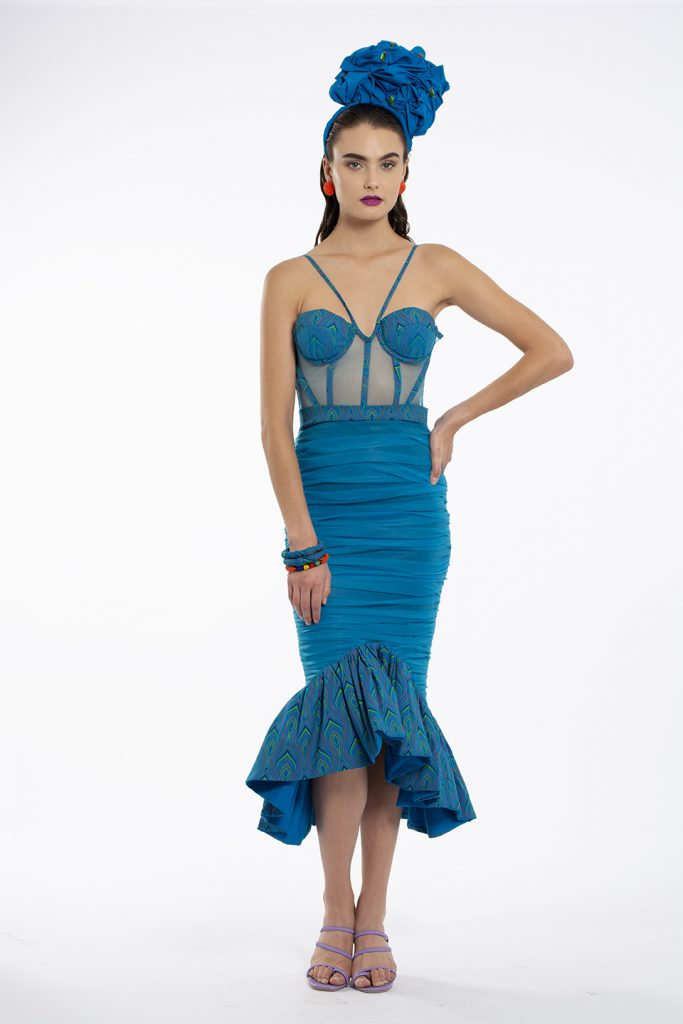 The collection consists of cerulean blue and squash orange ensembles which are accented with Shweshwe prints, which include pops of beads, which can be worn to any elegant event.