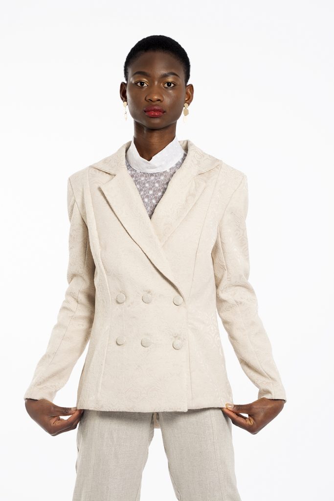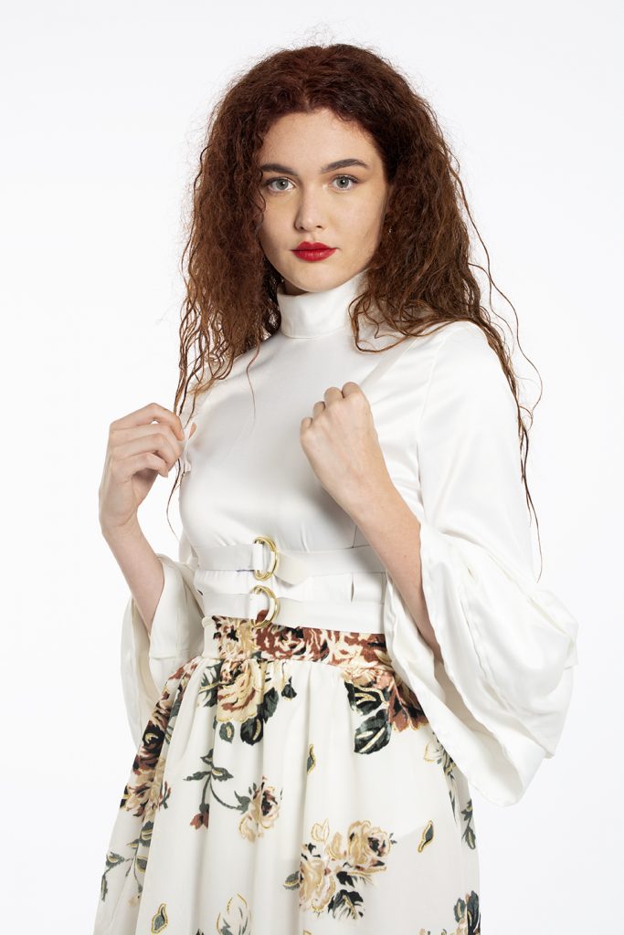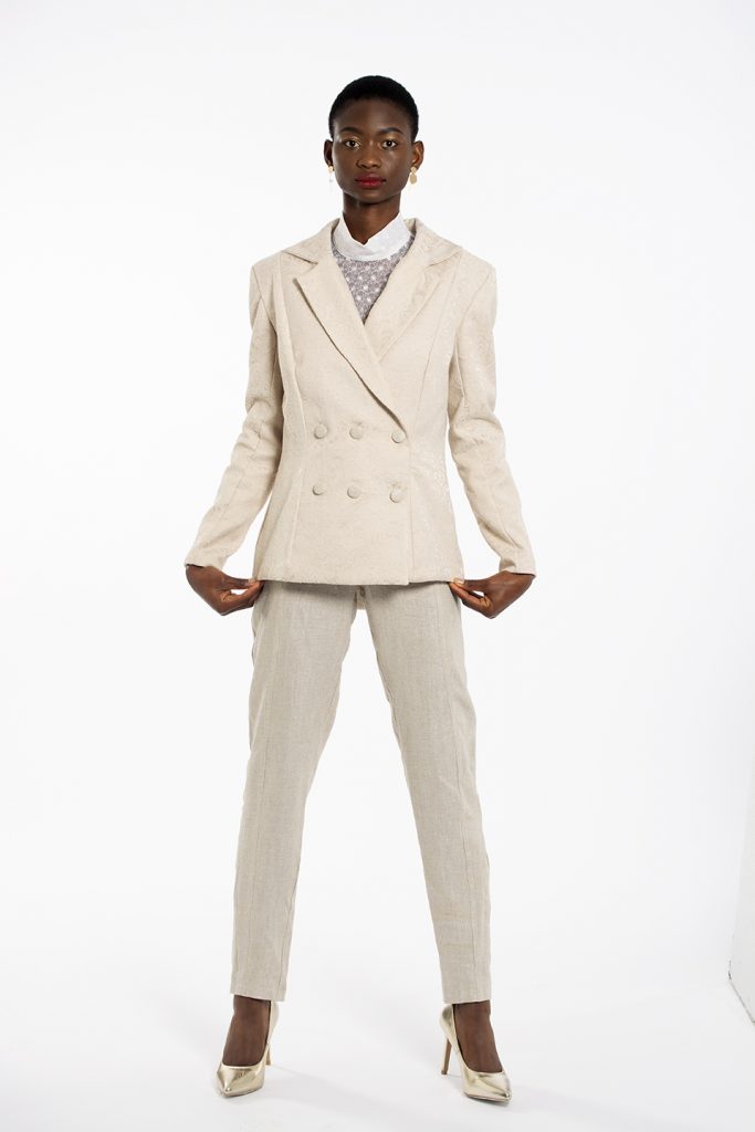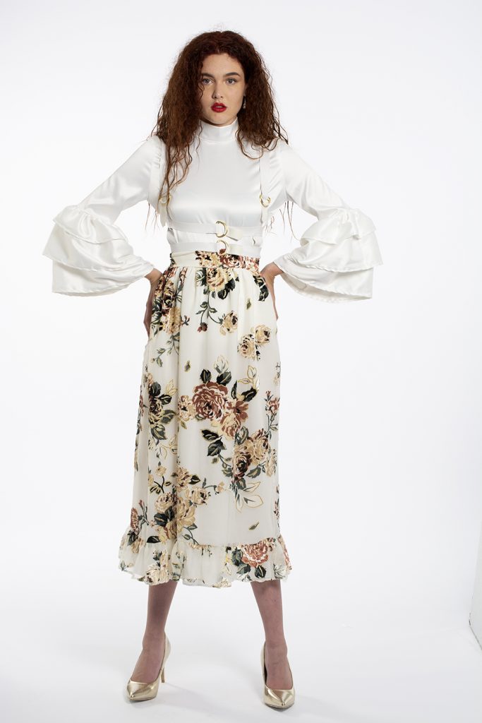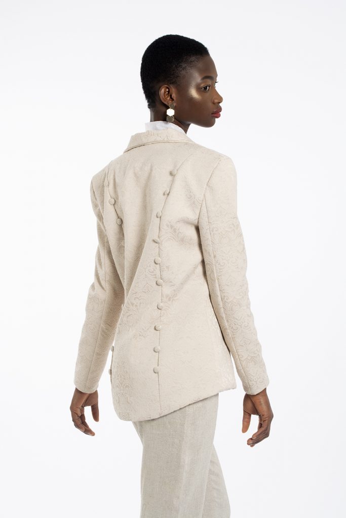 My collection is a bridal collection, designed to go against the stereotypical construct of what a bride should wear on her big day. The collection consists of one off-white, A-line dress with a feathered train    for those brides who would still like to go semi-traditional. The rest of the collection goes the unconventional route, for the brides whom want to go against the norms, including a tailored suit and blouse, a jumpsuit and blouse and a skirt and blouse. The designs and fabric choices are inspired by the stately soiree trend, including rich fabrics to create an opulent look and feel.