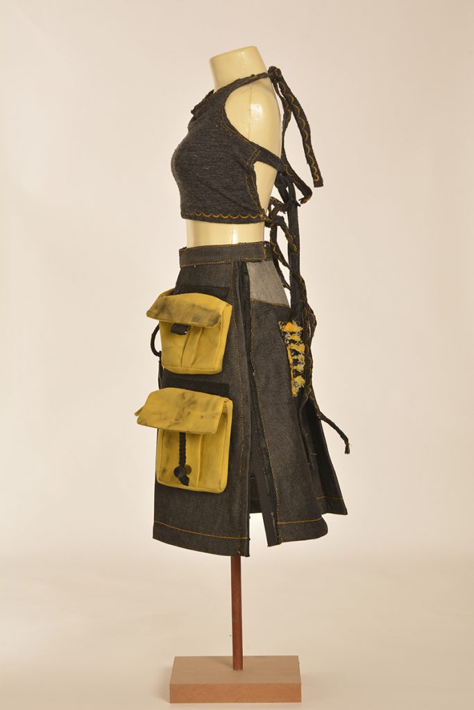 Learners were tasked to create designs that are directed and developed through a creative synthesis of contextual adherence. They were provided with two contexts: the first is the utility wear trend, which has a particular style embodied by the protective performance or multipurpose product trends but is also focused on functional problem solving. So, it looks a certain way, but it also functions in a certain way. The function involved here will relate to the conditions and problems of the COVID-19 lockdown. The other context is a subcultural style (there are three options to choose from here). The subcultural style is your vibe: while you must adhere to the context of punk/hip hop/grunge, this is an opportunity for you to express your creativity.