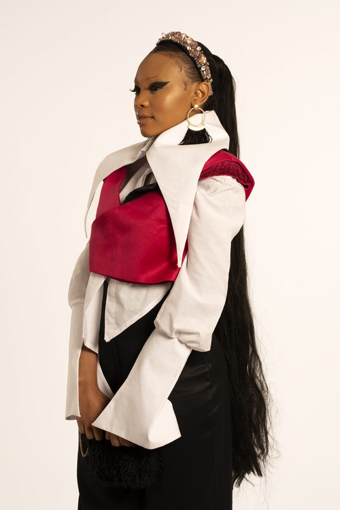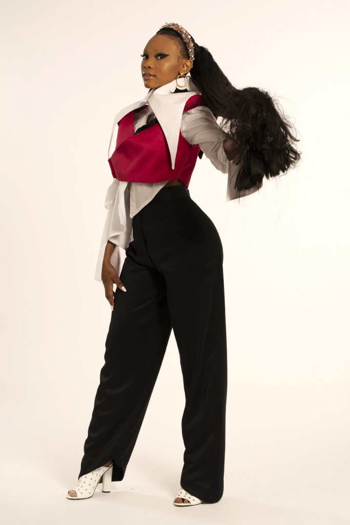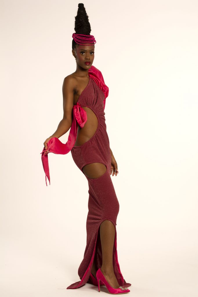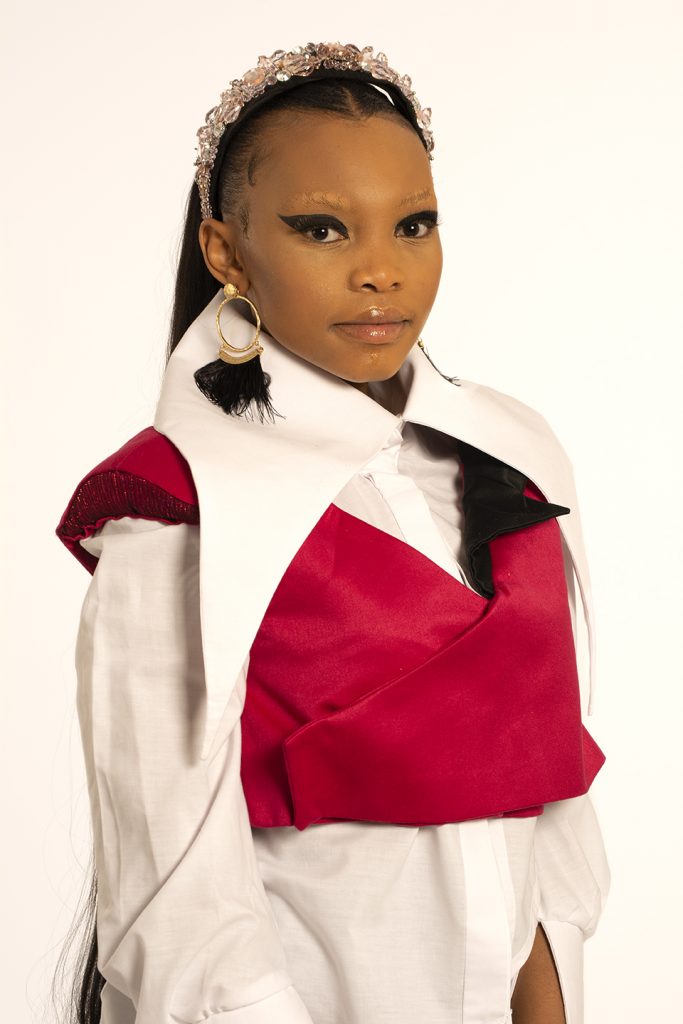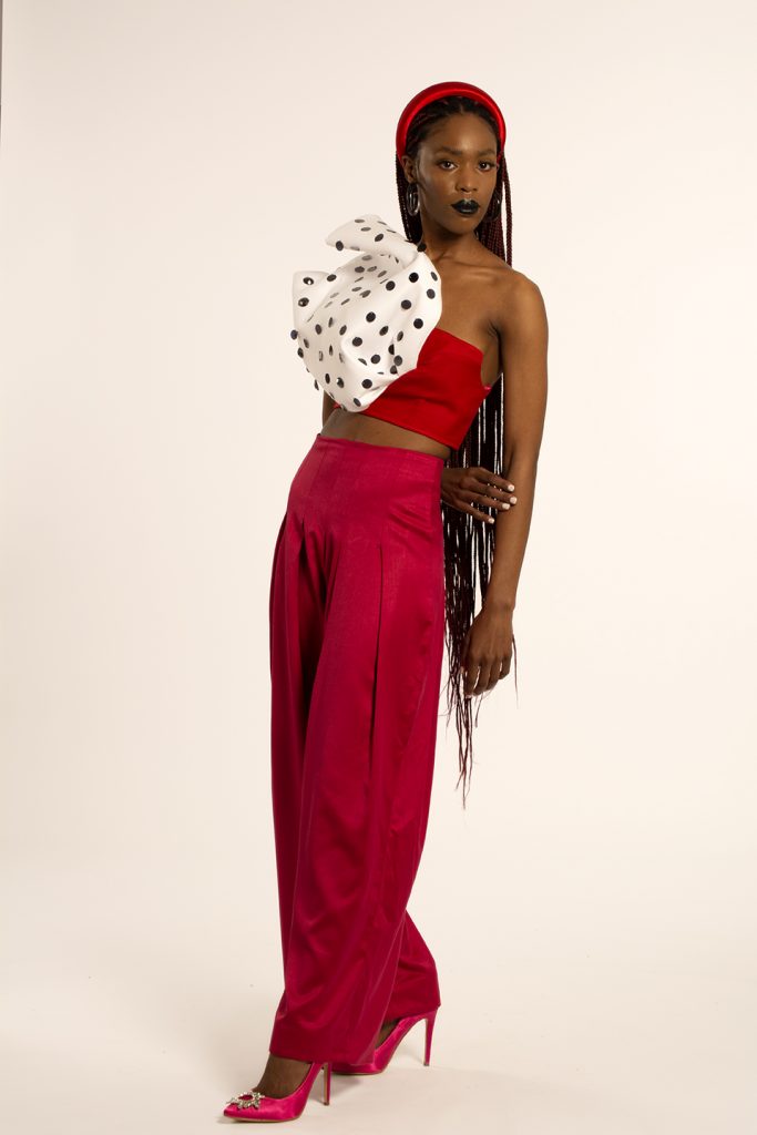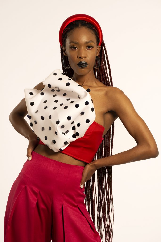 For as long as I can remember, I’ve always wanted to be an artist. That’s what I view my design aesthetic as; artistic. Every time I design, I try to be as conceptual as I can be. I am a visionary and my designs show that, I tell conceptual stories in my designs through shapes and proportions. The kind of designer I am has always been shaped by the way I was raised and the environment I grew up in. My mother raised me to believe in thinking creatively and out of the box, to be able to be free in my decision making and exploring my creative abilities. As a result, I saw the world through an artistic lens, I learnt about artist like Frida Kahlo who was a feminist and Andy Warhol who was a leading figure in the pop art movement in his time. I resonate with these two arts because I believe my design aesthetic is a merge the work they’ve put out and the way they presented themselves to the world. I have incorporated shapes and silhouettes in my designs that are camp inspired, my designs are still interchangeable wardrobe items. I made use of asymmetry to bring newness and exploring pop art elements and colours for a more vibrant collection.